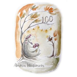 Akryylitöiden lisäksi teen kuvituksia piirtäen ja akvarelleilla maalaten. Osasta kuvituksia teen erilaisia tuotteita, joita myyn erikoiserinä.